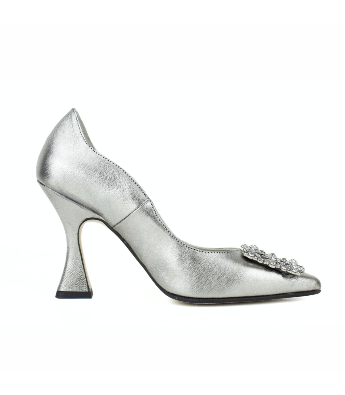 Este salón, disponible en tono gris, verde, marrón moka, marrón claro, burdeos y plata, cuentan con joya a juego y talón curvado, de forma que evoca la sofisticación de la moda francesa. Su diseño refinado te transportará a la elegancia parisina, agregando un toque de glamour y distinción a cada paso, haciendo de cada momento una experiencia elegante y memorable.